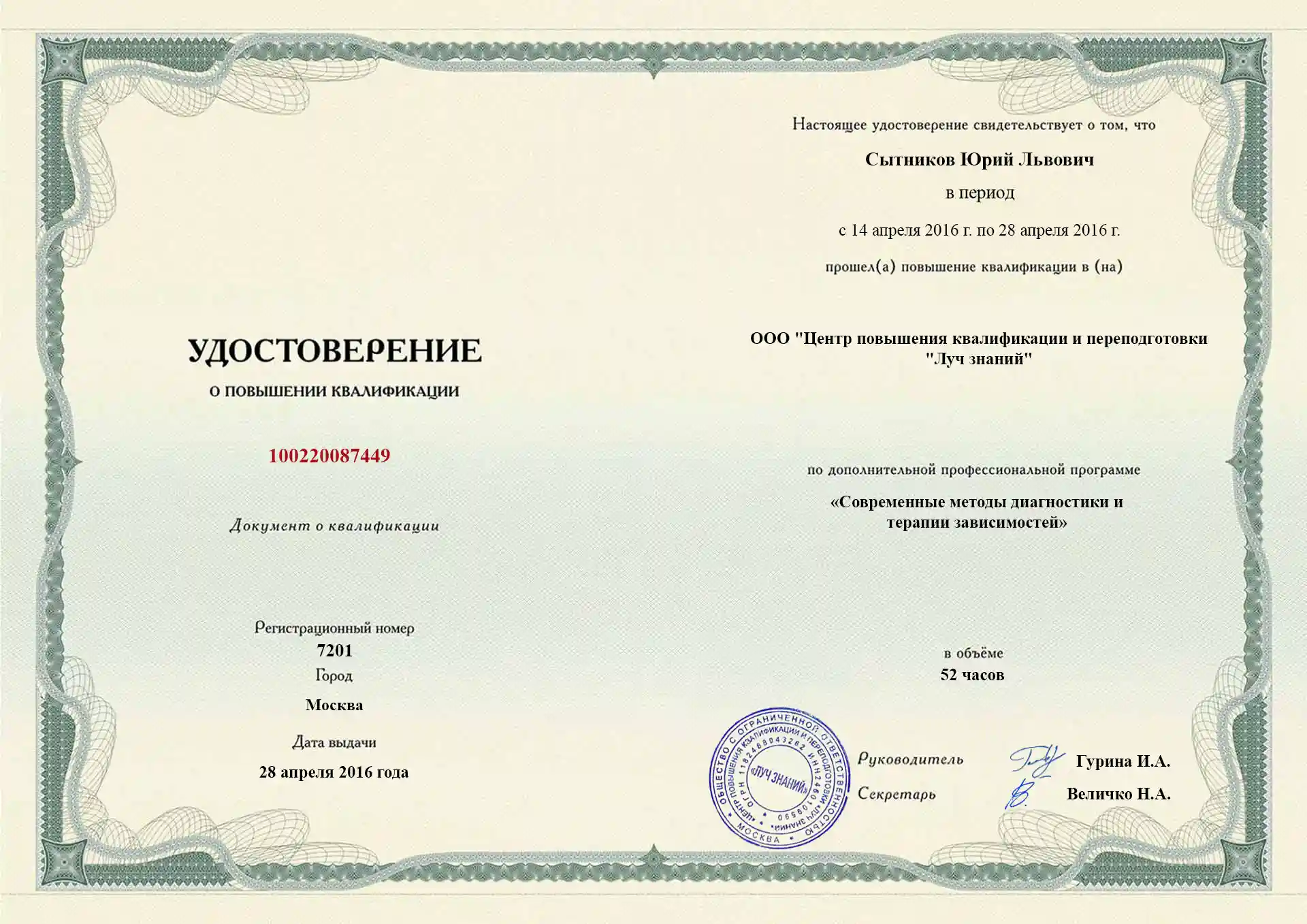 Доктор Юрий Сытников отлично владеет своей профессией. Он был терпеливым и понимающим, и его поддержка и лечение были неоценимы.
